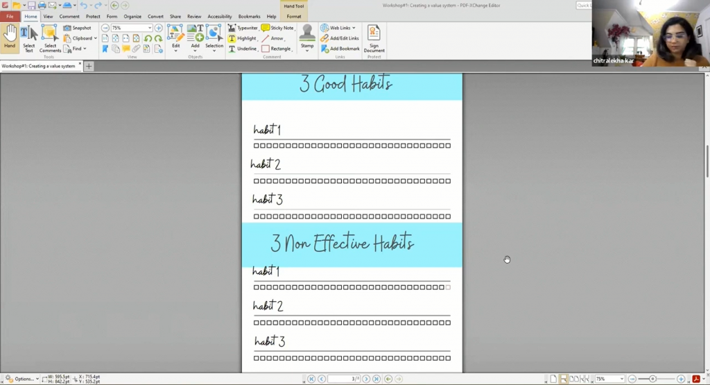 We started our workshop by requesting the participants to fill out a habit tracker. We asked them to write down their daily habits. As habits are mostly subconsciously done, we may not always realize how some of them are effective while others may not serve our goals or purposes.