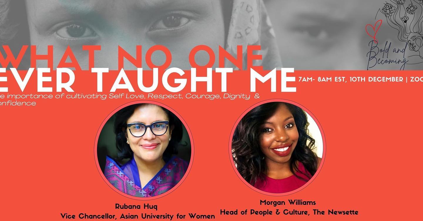 Thus, Bold and Becoming has organized its first ever virtual event called What No Ever Taught Me.